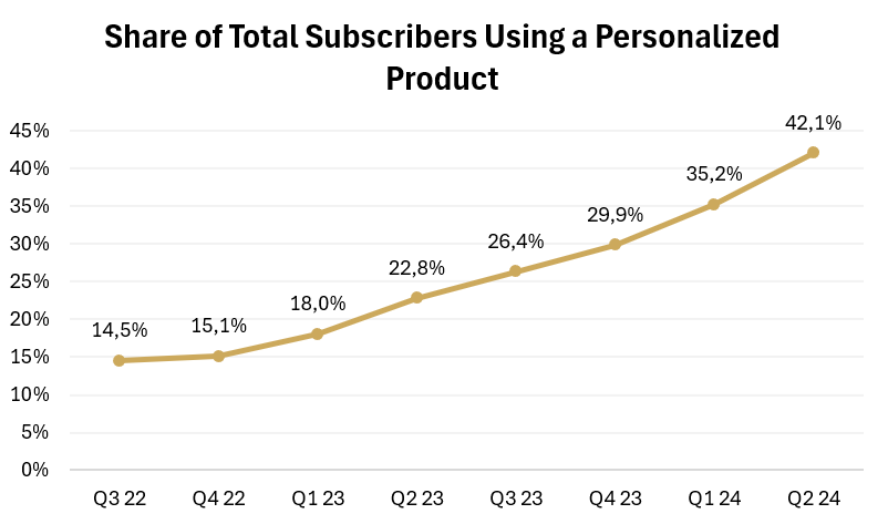 As of the last quarter, 42.1% of customers were using a personalized solution, up from 14.5% less than two years ago. This number is expected to exceed 80% in the short term. HIMS believes that this will significantly help improve retention rates, which is one of the most important areas to focus on.