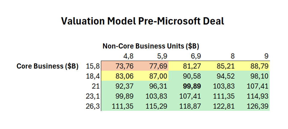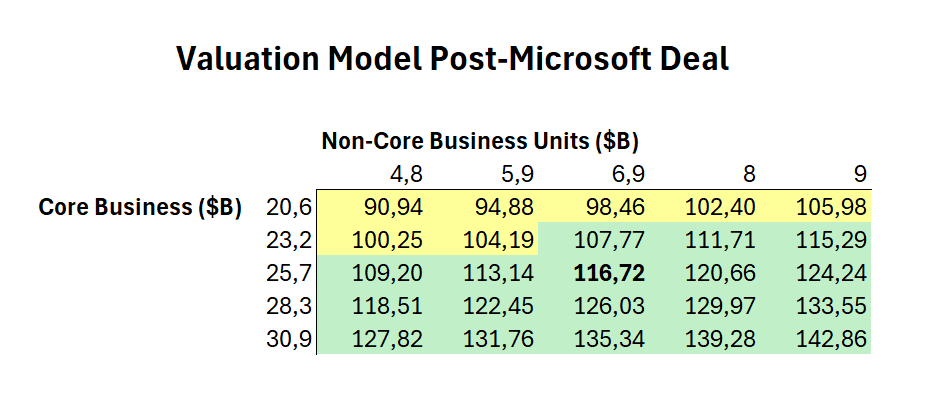 Here’s my updated Valuation Model Post-Microsoft deal (YE 2025):