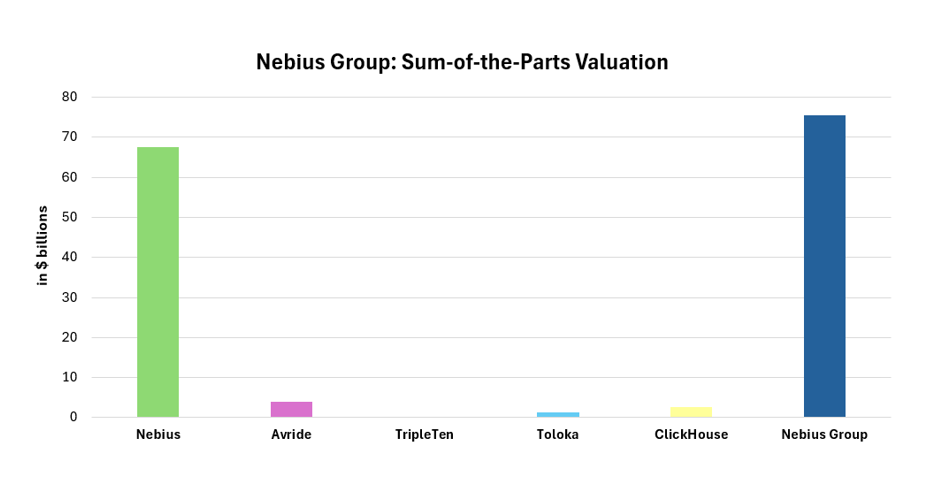 Before ClickHouse’s most recent funding round, NBIS disclosed a 28% ownership stake. Although Nebius participated in that round, it did not disclose the updated stake in its Q2 or Q3 results. Given its participation, I assume only modest dilution.