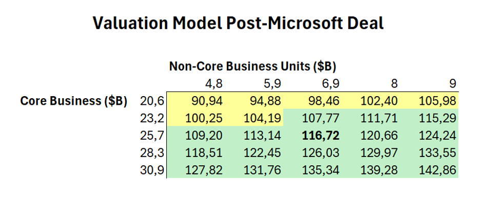 Of course, the risk-reward profile is different today, but I actually think it’s just as compelling, if not more so, than it was in the $50-60s before the Microsoft deal was announced. We now have far greater visibility, which meaningfully de-risks the investment.